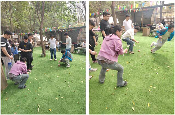 吃饱喝足,便开始了团建的游戏时间。本次团建游戏分为两组PK,广域网团队化名“追风组”,安全服务团队化名“鲲鹏组”,交付经理担任游戏裁判。此外共有3个游戏,采用三局两胜制。