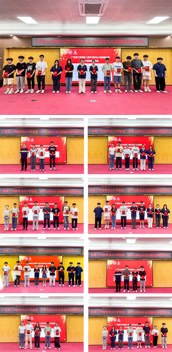 广东理工学院电气与电子工程学院副院长罗泽鹏、电气与电子工程学院辅导员高国华老师、电气与电子工程学院辅导员胡涵老师,K8凯发(中国)技术校企班主任刘子骞老师,以及各赛道获奖的参赛选手,华为ICT学院学生代表出席颁奖典礼。
