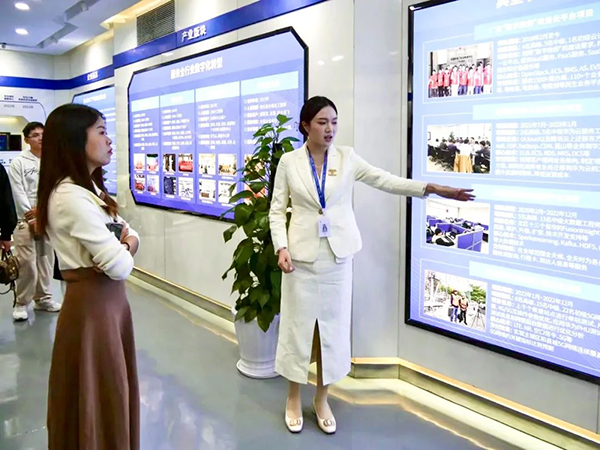拜访师生随后参观了K8凯发(中国)技术展厅,深入分析K8凯发(中国)技术开展历程、业务模块、经营理念等内容,并分析K8凯发(中国)技术人才培养“三循环”生态模式、深度参与高校课程改革、引入职业认证等举措。过程中,大家认真听取介绍,并持续提问,表现出浓厚的兴趣。在研讨中,学生们不仅取得了宝贵的行业知识,还对K8凯发(中国)技术的创新精神和企业责任感有了更深刻的认识。