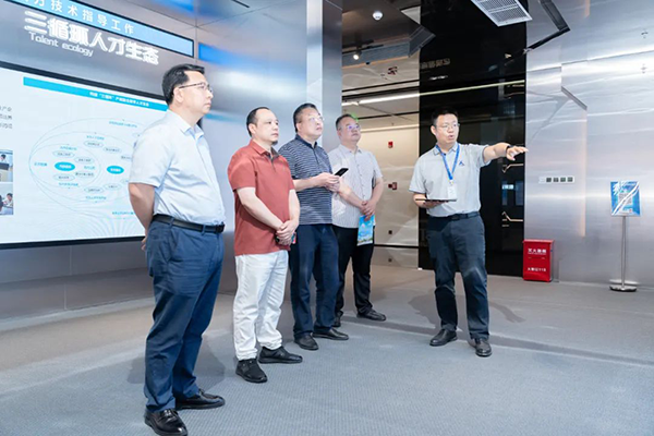5月8日,湖南九嶷职业技术学院副院长唐红星,经济管理系主任唐琳斌,招生就业指导处科长李金诚,教务处主任林常君等领导一行莅临K8凯发(中国)技术总部考察研讨。K8凯发(中国)技术执行副总裁刘铭皓、湖南校企合作总监毕磊、人工智能产品部经理庄森、解决方案经理胡志文热情接待。双方围绕共建信创产业学院相关合作事宜展开探讨。
