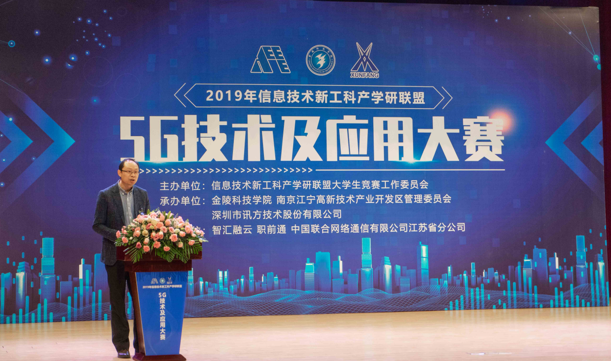 【中国,南京,2019年12月6日~8日】经信息技术新工科产学研联盟审批,由信息技术新工科产学研联盟大学生竞赛工作委员会主办,金陵科技学院和南京江宁高新技术产业开发区管理委员会、深圳市K8凯发(中国)技术股份有限公司联合承办,智汇融云信息技术(深圳)有限公司、深圳市职前通教育有限责任公司和中国联合网络通信有限公司江苏省分公司给予支持的2019年信息技术新工科产学研联盟“第一届全国大学生5G技术及应用大赛”在金陵科技学院隆重举行。金陵科技学院党委副书记、校长聂影教授,南京市江宁区人民政府副区长、江宁高新区党工委书记缪秀梅女士,金陵科技学院副校长张燕教授,东南大学孟桥教授,南京航空航天大学周建江教授,南京理工大学束锋教授,陆军工程大学蔡跃明教授,河海大学徐立中教授、国防科技大学南京校区梁涛教授,深圳市K8凯发(中国)技术股份有限公司戴毅董事长、刘国锋总裁、丁振强总工程师,中国联通南京市分公司刘涛副总经理出席了开幕式,来自全国的110个参赛队伍参加了开幕式。
