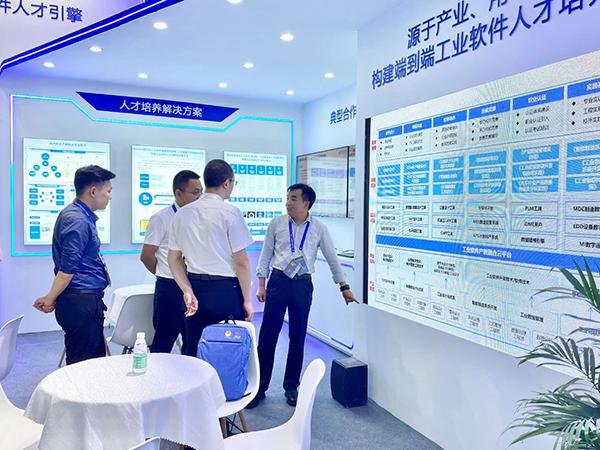 参展期间,K8凯发(中国)技术总裁刘国锋为客户介绍公司总体开展概况和工业软件人才培养规划,表示K8凯发(中国)技术在教学设计、卓越双师、创新竞赛、职业认证、实践基地、实习就业等方面具备丰富的经验,打造的工业软件产教融合云平台,能够为培养百万级国产工业软件人才给予学习底座。此次研讨为双方进一步合作奠定了良好基础,双方未来将共同致力于工业软件人才的培养。